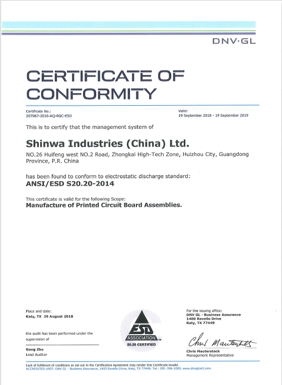ESD S20.20-2014 平南证书(2018)