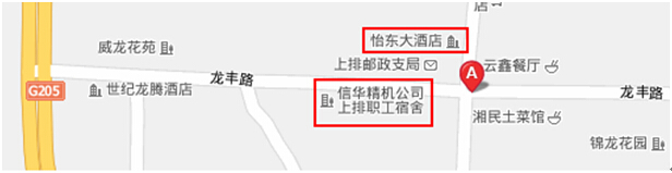 从惠州汽车站到上排职工宿舍的位置路线图请参考下图: